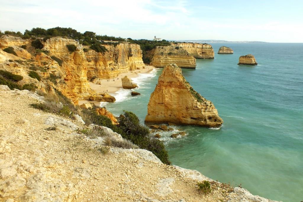 Com um traçado sinuoso sobre as arribas passando por varias praias escondidas que são verdadeiros paraisos, a paisagem deslumbrante e o verde turquesa do mar Algarvio a apetecer dar um mergulho não fosse estarmos no inverno com o mar ligeiramente crispado.