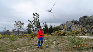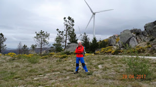 Inicio junto á igreja de Varziela atravessando a aldeia em direcção ás eólicas lá em cima encontramos varios grupos de escuteiros em actividade. Começamos a descida em direcção a Bezerreira onde procuramos um tasco para petiscar algo mas nada feito o restaurante da aldeia encontra-se fechado ao sabado, o unico sitio que estava aberto era o bar da associação que só tinha bebidas e café com cheirinho que um de nós provou e disse que era muito bom (o cheirinho). Fizemos o almoço bem no alto junto ás eólicas.Daqui começamos a descer em direcção ao rio Águeda e o percurso é feito nas margens do mesmo onde vimos alguns moinhos muito degradados mas com paisagens bonitas.