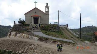 Destino Varzielas conselho de Oliveira de frades inicio do trilho "Rota dos Cabeços" mas antes pelo caminho depois de sair da A25 encontrar um sitio para comprar pão, verdadeiro desafio pois onde paravamos havia pão mas para consumo da casa. Foi então que vimos o café da Gloria e junto uma mercearia onde o pão é só vendido em saca de 5 pães, como nós queríamos 6 a senhora mandou uma moça ao café ao lado buscar 1 pão, ainda hoje não percebemos porque não tirou 1 pão de outra saca para a nossa ficar com 6 enfim modas ou mitos.
