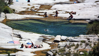 No regresso pelo lado contrario do rio fomos cruzando com mais gente a chegar com lancheiras e toalhas tudo para as Lagoas debaixo de um calor abrasador e crianças de chinelos de dedo. Enfim modas de Agosto.